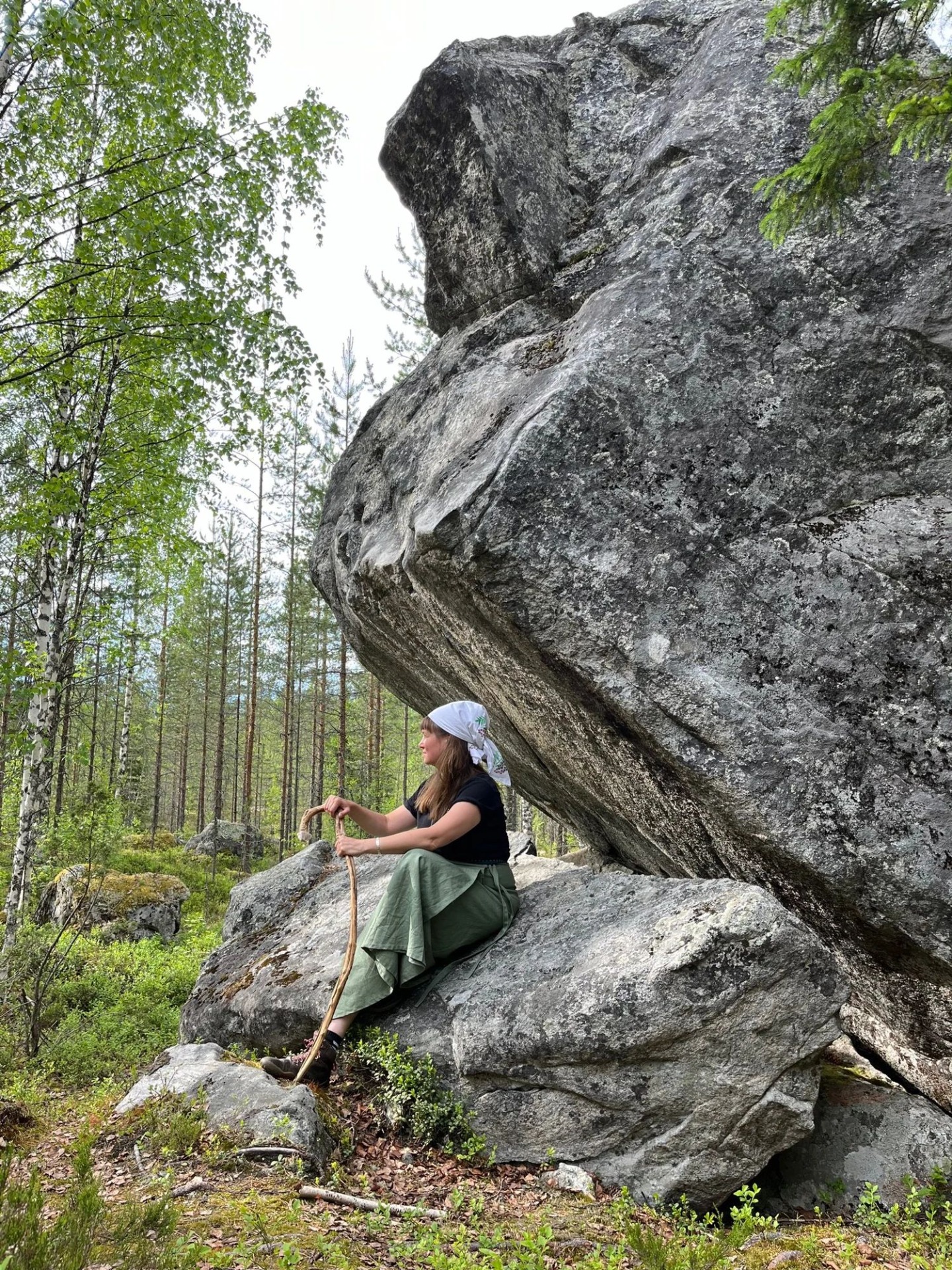 Olen mukana tällä retriitillä pohjoiskarjalaisena naisena, jonka esiäitien henki elää näillä karjalan kunnailla. Olen teini-ikäisten kaksosten äiti, jonka äitiyden kohtalossa värittyy vahvat patriarkaatin luomat rajat. Elämäntyöni on perinteenkantajana ja taiteen ystävänä. Minnuu kiehtovat vanhimmat pohjoiset animistis-shamanistiset perinteemme ja niiden monituhatvuotiset jatkumot. Työskentelen ohjaajana Karhun Talossa, jonka lisäksi edistän itäsuomalaista taidetta KAARNAssa. Olen Pielisen Tietäjäkeskuksen perustajajäsen. Keväällä 2026 väittelen filosofian tohtoriksi kulttuurintutkimuksen alalla Itä-Suomen yliopistossa, erikoistuen shamaaniuden merkityksiin ja muutoksiin alueellamme. Tällä retriitillä tulen luennoimaan, ohjaamaan meditaatioita ja luontohetkiä, toimimaan rituaalien ja saunotuksen parissa, sekä autan retriitin suunnittelussa ja koordinoimisessa. Odotan innolla yhteistä ohjausta Marin kanssa, jonka uskomatonta taitoa tarinankertojana ja runonlaulajana voin vain ihailla.